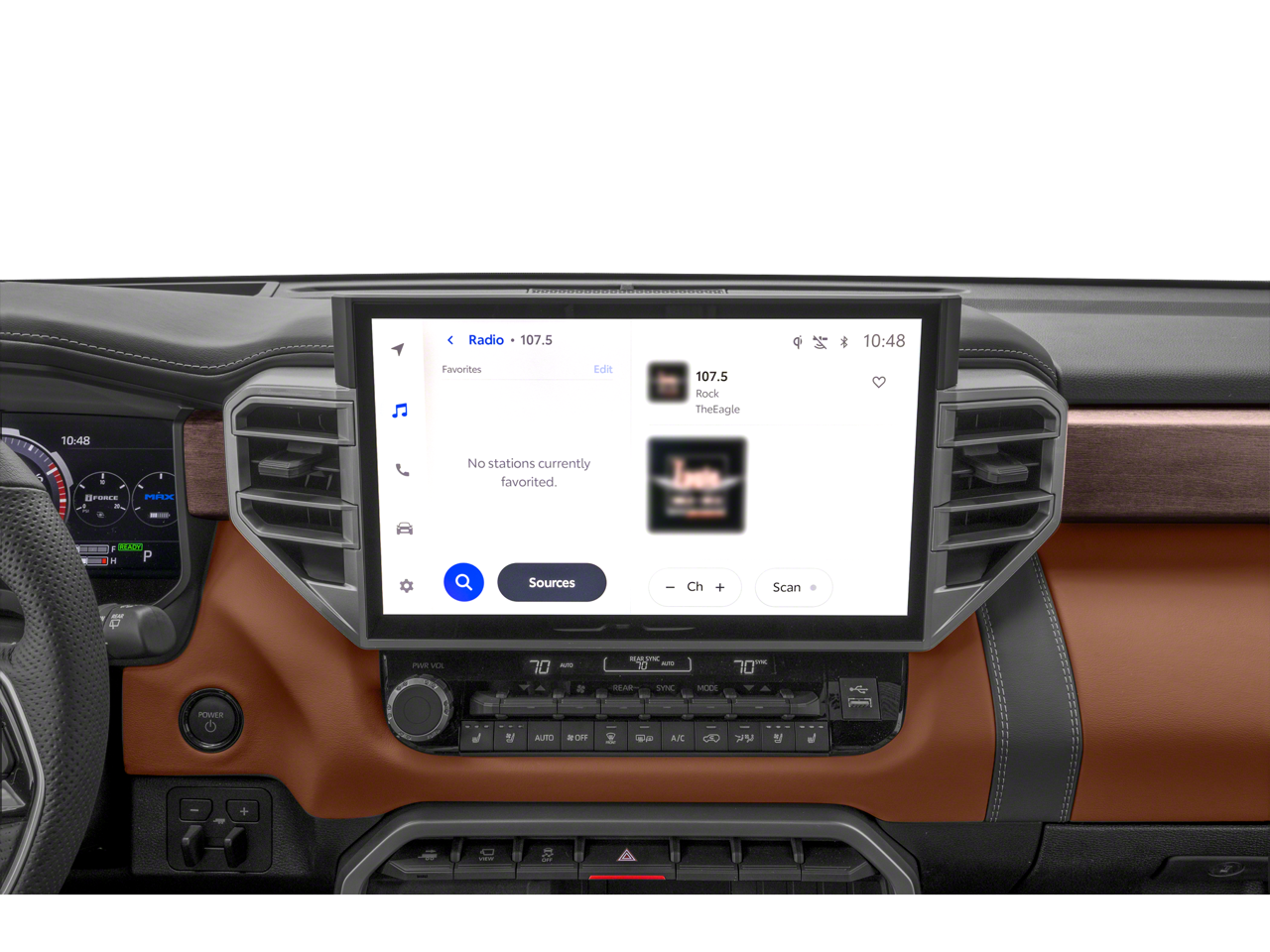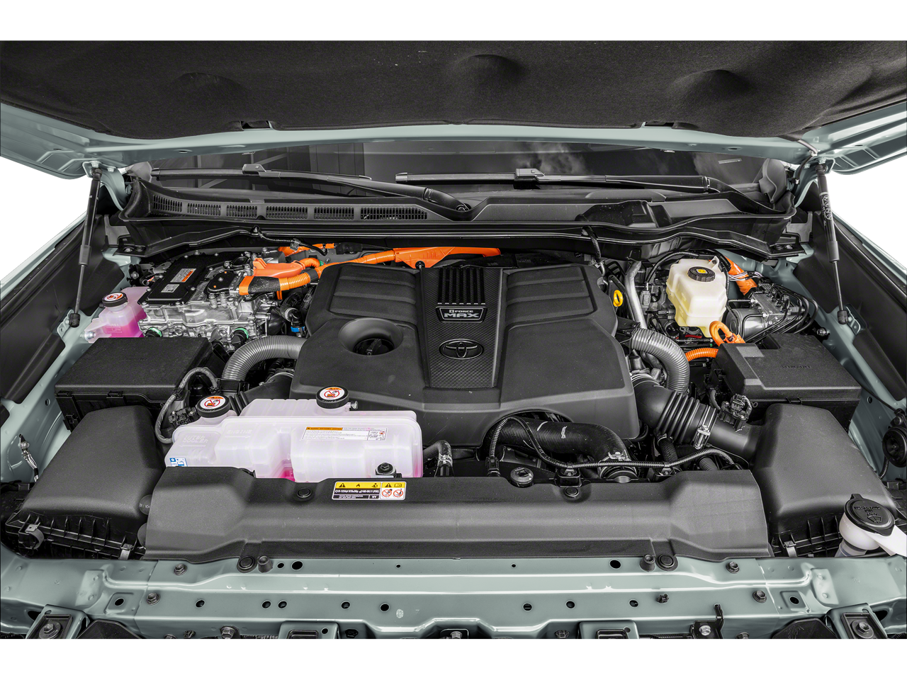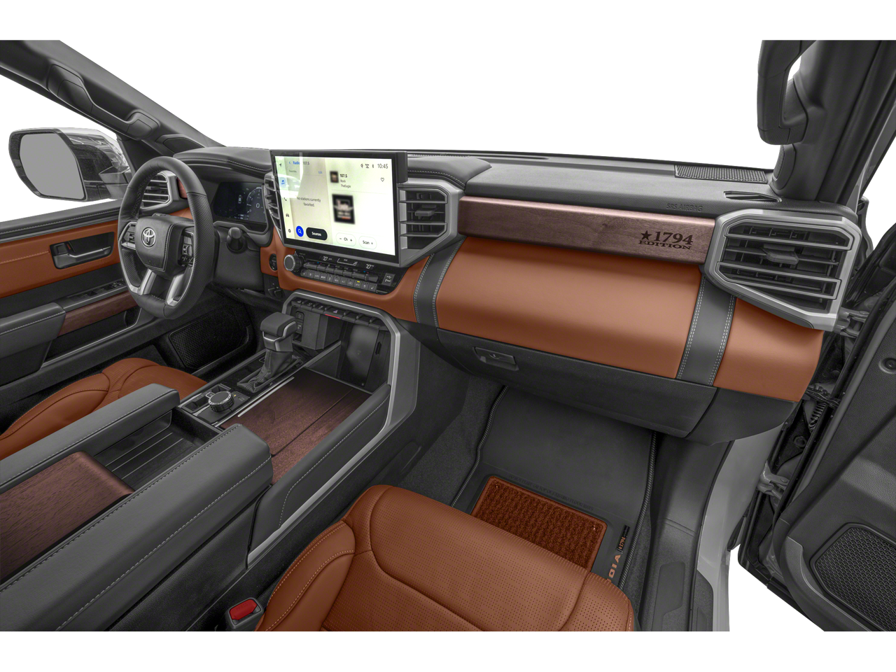 POWER RUNNING BOARDS, HEAD UP DISPLAY (HUD) 10-inch color display w/speedometer, navigation and hybrid system indicator. Toyota 1794 Edition with Midnight Black Metallic exterior and SADDLE TAN interior features a V6 Cylinder Engine with 437 HP at 5200 RPM*.