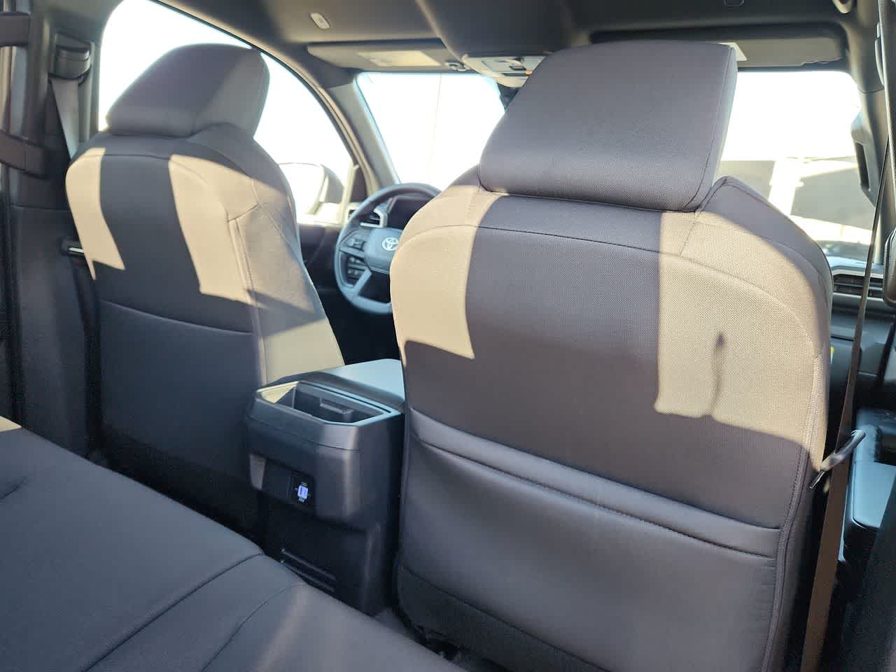 Dual illuminated rear center console-mounted USB charging ports.