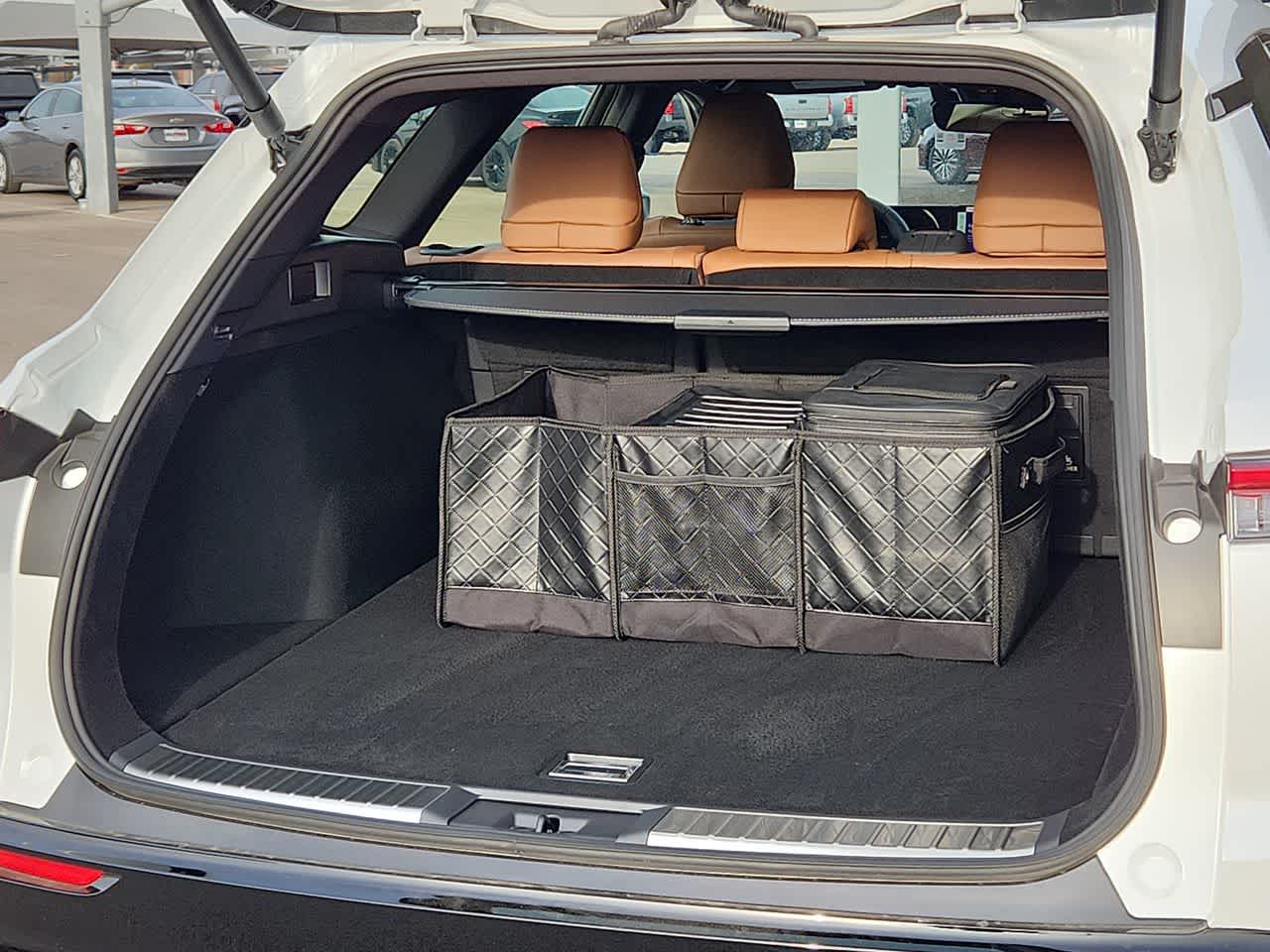 - Rear Cargo Organizer features one large and one small solid-sided covered bin that accommodates items in a variety of shapes and sizes.