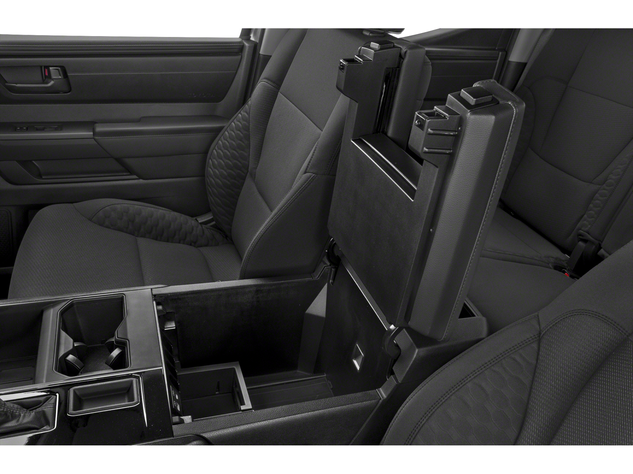 - Fixed center console with gated shift lever, driving controls, four cup holders, and center storage bin