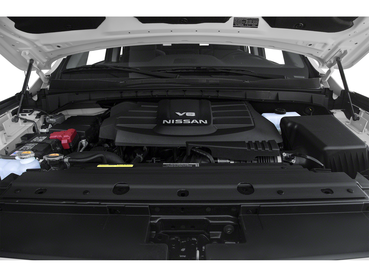 SV CONVENIENCE PACKAGE NissanConnect Services, Leather-Wrapped Steering Wheel, Auto-Dimming Rearview Mirror, Front & Rear Parking Sensors, Radio: NissanConnect w/Navigation, NissanConnect w/navigation, 9 touchscreen display, Nissan door to door navigation w/3D building graphics and satellite imagery, connected navigation features including online POI search, over-the-air map updates and online premium traffic information, SiriusXM Traffic, SiriusXM Travel Link (weather, fuel prices, movie listings, stock info, sports and parking) and TomTom weather, 2 Illuminated USB-A Ports In Back Of Center Console, Charge only, Rear HVAC Vents, Dual Illuminated Vanity Mirror Front Sun Visors, extension, Intelligent Key System, driver and passenger request switches, Convex Spotter Mirror, Power, LOOP SIDE STEPS. Nissan SV with Super Black exterior and Black interior features a 8 Cylinder Engine with 400 HP at 5800 RPM*.