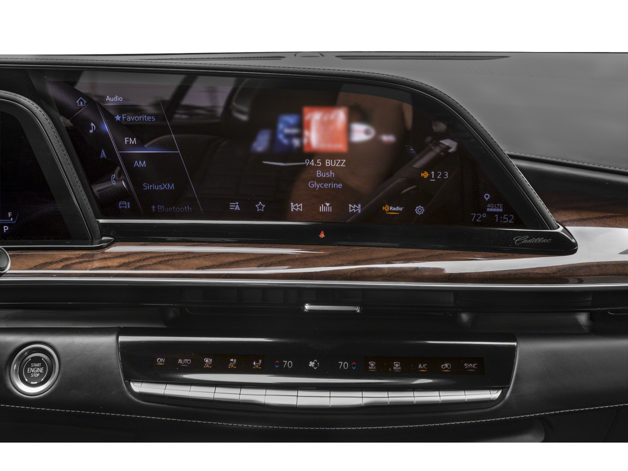 SUPER CRUISE a hands-free driver assistance system for use on compatible roads (Beginning with start of production through October 2, 2022, vehicles will be forced to include either (00U) Not Equipped with Super Cruise and/or (02O) Not Equipped with Super Cruise, which will remove Super Cruise and its content. See dealer for details or the window label for the features on a specific vehicle. Always pay attention while driving and when using Super Cruise. Do not use a hand-held device. Visit cadillac.com/supercruise for compatible roads and full details.), NIGHT VISION, OLED INFOTAINMENT EXPERIENCE WITH NAVIGATION AM/FM/SiriusXM with 360L with 16.9 diagonal color information display (displays and controls navigation, music and all features and functions of the vehicle), personalized profiles for each drivers settings, Natural Voice Recognition, Phone Integration for Wireless Apple CarPlay®/Wireless Android Auto® capability for compatible phone, Connected Apps and Teen Driver (STD), ENGINE, 6.2L V8 WITH DYNAMIC FUEL MANAGEMENT Direct Injection and Variable Valve Timing, includes aluminum block construction (420 hp [313.2 kW] @ 5600 rpm, 460 lb-ft of torque [623.7 Nm] @ 4100 rpm) (STD), TRANSMISSION, 10-SPEED AUTOMATIC electronically controlled with overdrive, tow/haul mode and tap up/tap down shifting (STD), WINDOW CONTROL, ALL WINDOWS, EXPRESS-UP/DOWN (auto Express-Up/Down via key fob) (Beginning with start of production, vehicles will be forced to include (00N) Not Equipped with 2nd Row Express-Up Window Control, which removes only 2nd Row Express-Up Window Control functionality. See dealer for details or the window label for the features on a specific vehicle.). Cadillac 4WD Sport Platinum with Black Raven exterior and Dark Auburn with Jet Black accents interior features a 8 Cylinder Engine with 420 HP at 5600 RPM*.