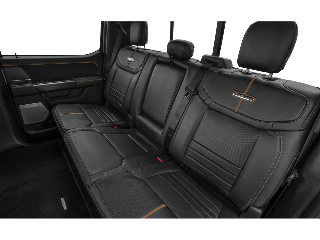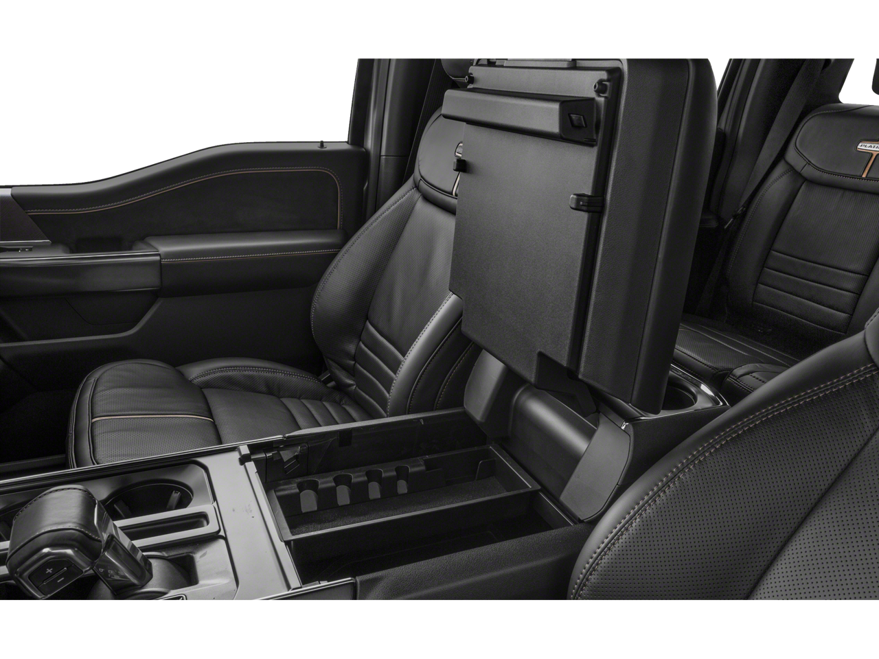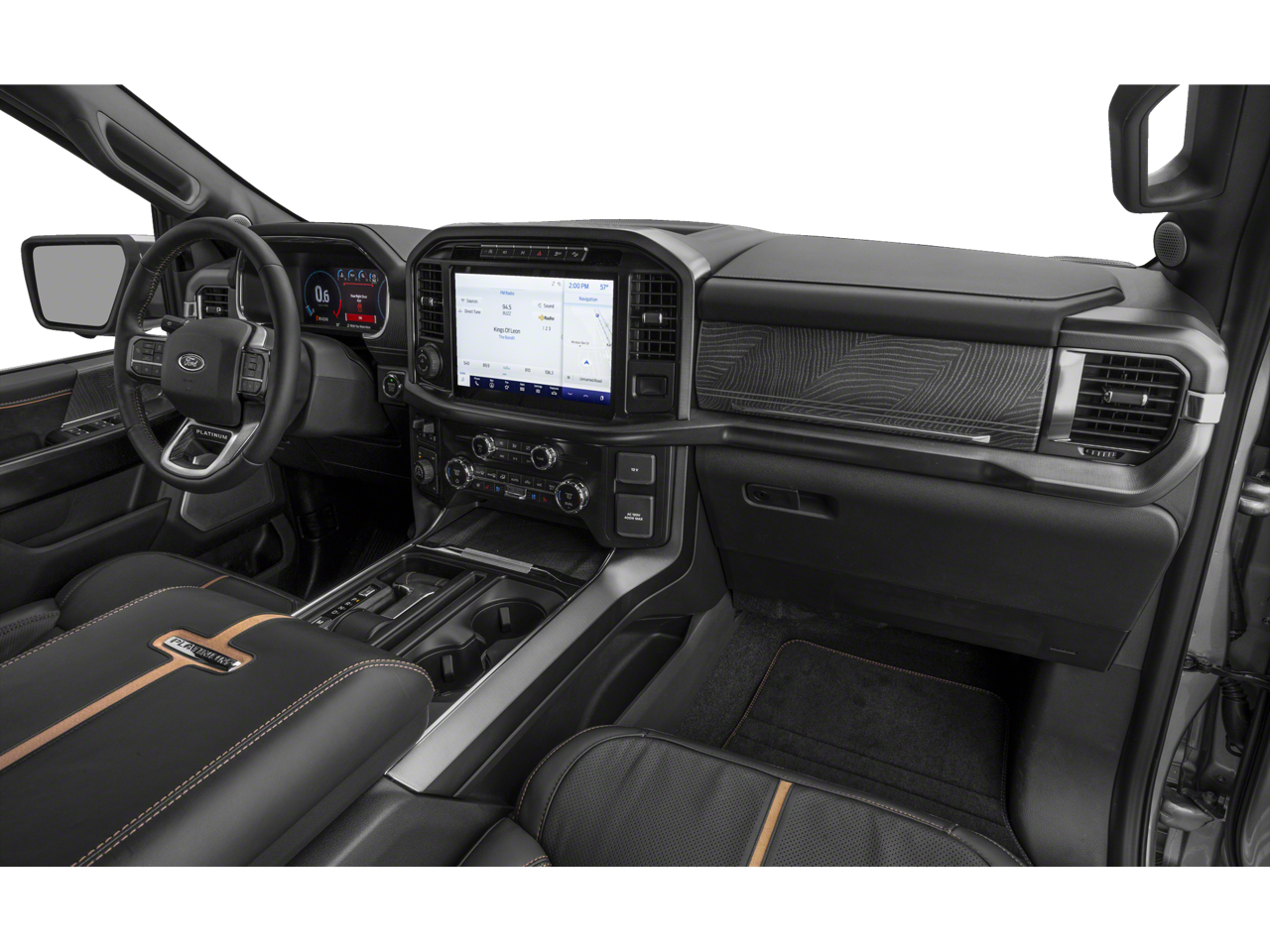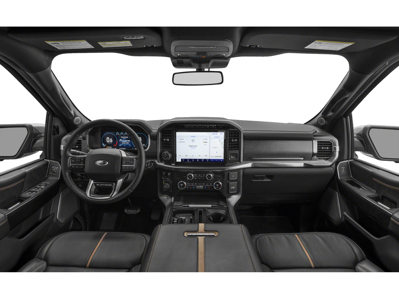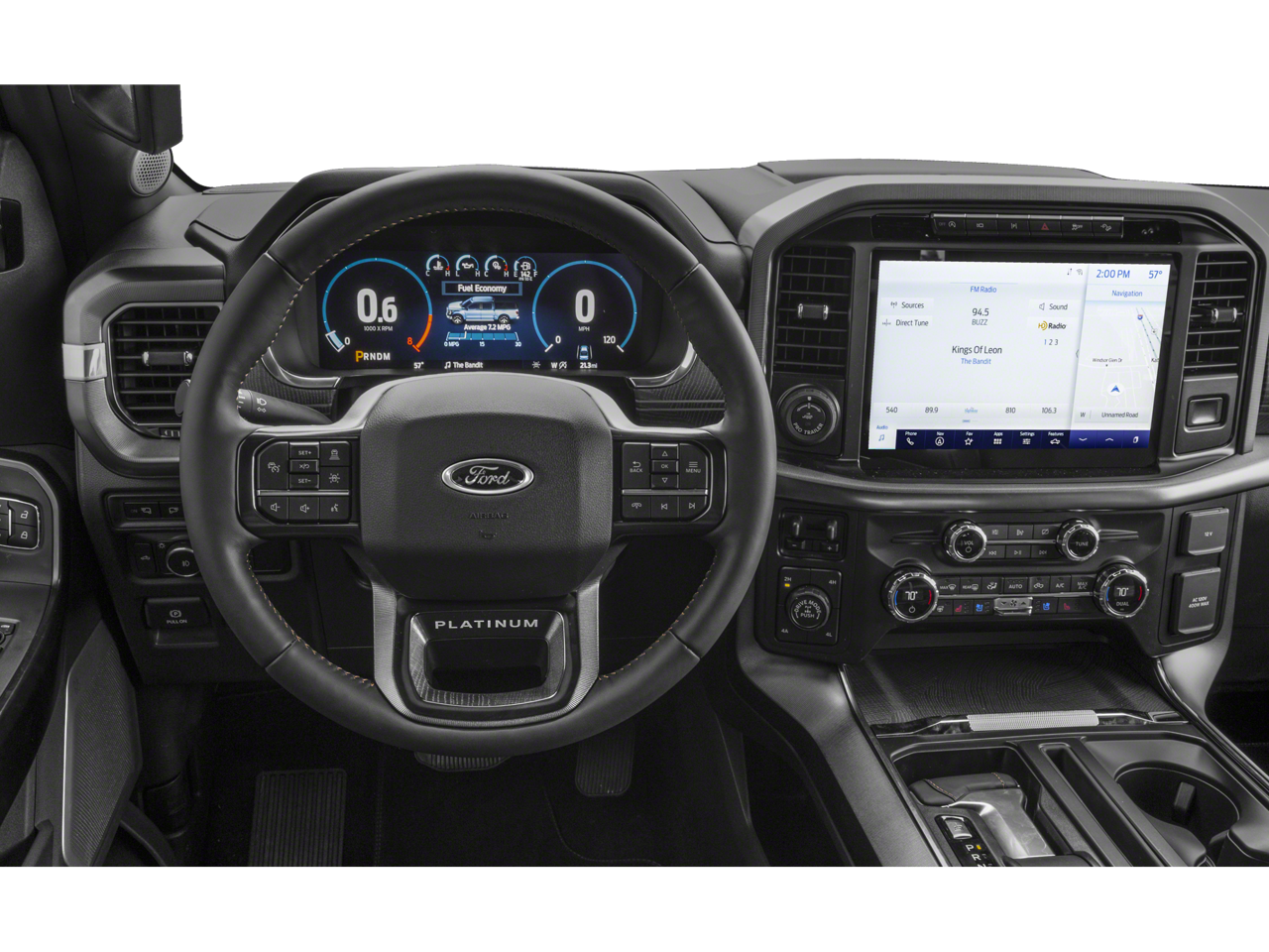 EQUIPMENT GROUP 701A HIGH Ford BlueCruise 1.0, forward sensing system, Active Park Assist 2.0, 360 Degree Camera, trailer reverse guidance, Radio: B&O Unleashed Sound System by Bang & Olufsen, HD Radio and 18 speakers including subwoofer, Pro Trailer Backup Assist & Pro Trailer Hitch Assist, Bed Utility Package, BoxLink, 4 premium locking cleats, LED Box Lighting, Tailgate Step w/Tailgate Work Surface, Power Tailgate, PLATINUM BLACK APPEARANCE Dark-Tinted Taillamps, Black Exterior Badging, Wheels: 20 Gloss Black Painted Aluminum, Black Belt Moldings, Unique Hood & Grille w/Black Accent, Black Front Tow Hooks, 2 two hooks, Body-Color Door Handles & Mirror Caps, Power-Deployable Running Boards w/Black Accent, Dark Interior Appliques, Black Tailgate Applique, Black Taillamp Bezels, TWIN PANEL MOONROOF, ENGINE: 3.5L V6 ECOBOOST, TOUGH BED SPRAY-IN BEDLINER, TRANSMISSION: ELECTRONIC 10-SPEED AUTOMATIC selectable drive modes: normal, ECO, sport, tow/haul, slippery, deep snow/sand and mud/rut (STD). Ford Platinum with Star White Metallic Tri-Coat exterior and Black interior features a V6 Cylinder Engine with 400 HP at 6000 RPM*.