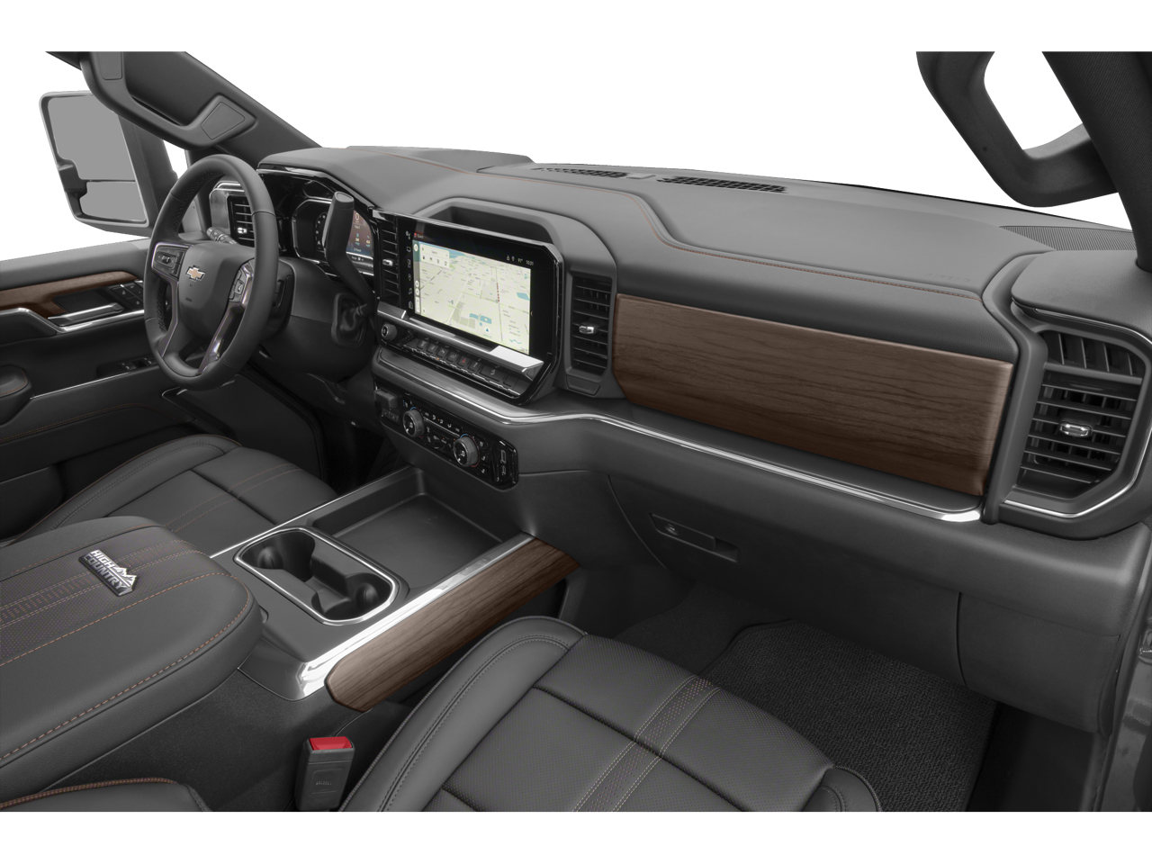 ENGINE, DURAMAX 6.6L TURBO-DIESEL V8 B20-Diesel compatible, (470 hp [350.5 kW] @ 2800 rpm, 975 lb-ft of torque [1322 Nm] @ 1600 rpm), ASSIST STEPS, POWER-RETRACTABLE, WITH BRIGHT TRIM includes LED lighting, SUNROOF, POWER on Crew Cab models, GOOSENECK/5TH WHEEL PREP PACKAGE Hitch platform to accept Gooseneck or 5th Wheel hitch. Includes hitch platform with tray to accept ball, stamped bed holes with removable caps installed and bed mounted 7-pin trailer harness (similar to UY2 harness). (Includes (CGN) Chevytec spray-on bedliner. LPO, HITCH PACKAGE Gooseneck ball and chain tiedown kit with case, (dealer-installed), AUDIO SYSTEM, CHEVROLET INFOTAINMENT 3 PREMIUM SYSTEM with Google built-in compatibility (select service plan required, terms and limitations apply) including navigation capability, 13.4 diagonal HD color touchscreen, includes multi-touch display, AM/FM stereo, Bluetooth® streaming audio for music and most phones; featuring Wireless Apple CarPlay® and Wireless Android Auto® capability for compatible phones, advanced voice recognition, in-vehicle apps, personalized profiles for infotainment and vehicle settings (STD), TRANSMISSION, ALLISON 10-SPEED AUTOMATIC. Chevrolet High Country with Sterling Gray Metallic exterior and Jet Black interior features a 8 Cylinder Engine with 401 HP at 5200 RPM*.