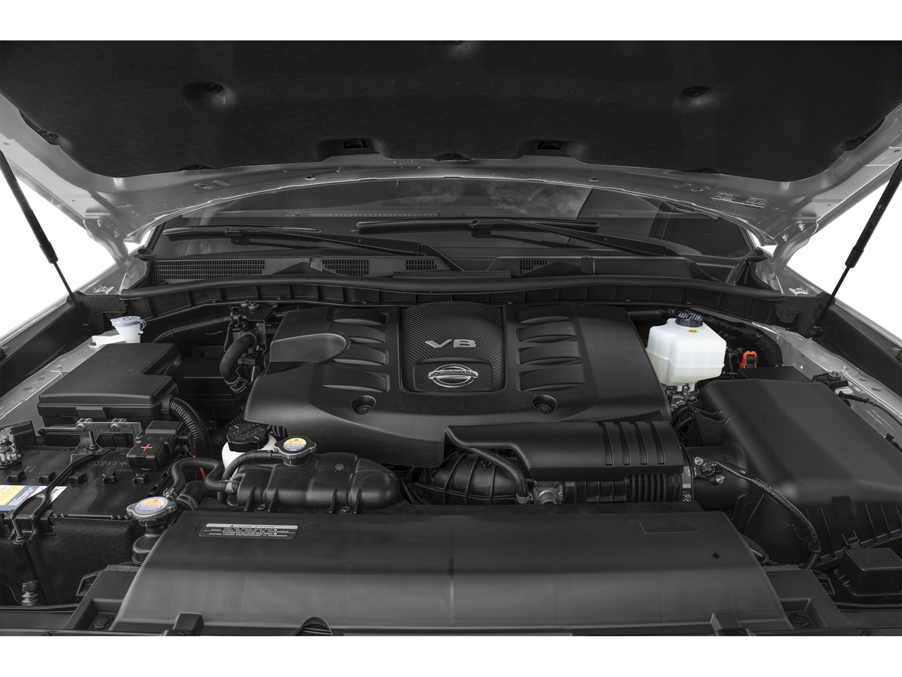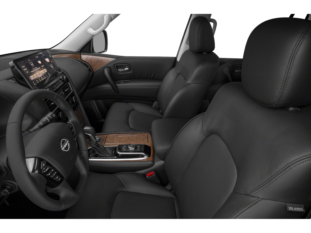 MIDNIGHT EDITION PACKAGE black exterior logos, black interior headliner and black interior trim, Rear LED Lamps w/Black Paint Finisher, Wheels: 20 x 8J Aluminum Alloy, 12-spoke, Cargo Mat & Midnight Edition Floor Mats, Black Painted Roof Rails, Front & Rear Lower Center Bumper Fascias, Black painted, Black Painted Grille, Auto-Dimming Exterior Mirror w/LED Turn Signals, Black painted, heated, power adjust and folding and reverse linked w/puddle lights, CAPTAINS CHAIRS PACKAGE Seating revised from 8 to 7 passengers, 2nd Row Captains Chairs, 2nd Row Center Console w/Padded Armrest. Nissan SL with Super Black exterior and Midnight Edition interior features a 8 Cylinder Engine with 400 HP at 5800 RPM*.