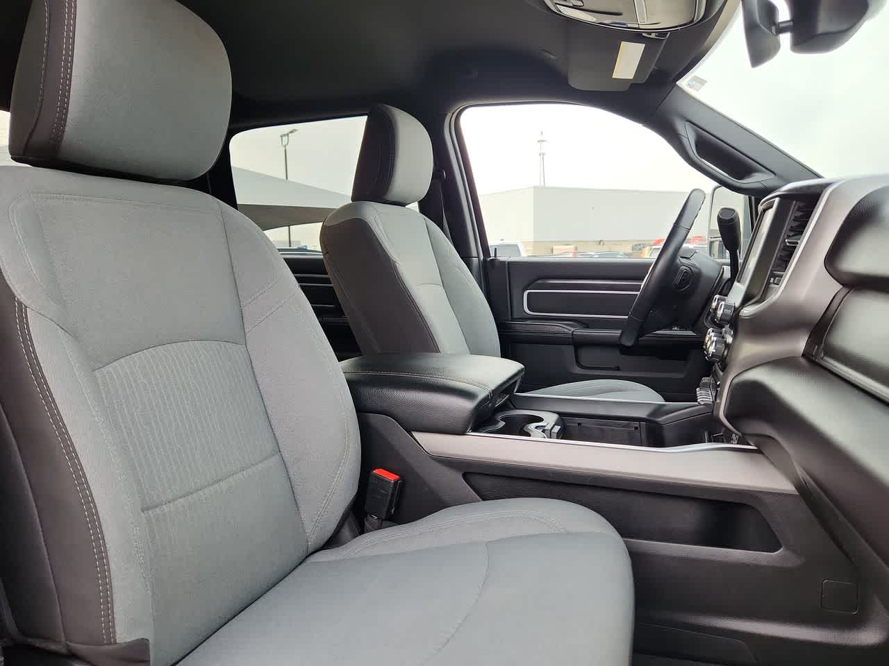 ENGINE: 6.7L I6 CUMMINS TURBO DIESEL Selective Catalytic Reduction (Urea), Dual 730 Amp Maintenance Free Batteries, Cummins Turbo Diesel Badge, Heavy Duty Engine Cooling, Tow Hooks, Diesel Exhaust Brake, Supplemental Heater, Front Bumper Sight Shields, Capless Fuel Fill w/o Discriminator, CHROME FLAT CAB-LENGTH SIDE STEPS, MOPAR SPRAY IN BEDLINER, ANTI-SPIN DIFFERENTIAL REAR AXLE, PARKSENSE FRONT/REAR PARK ASSIST SYSTEM, DIESEL GRAY/BLACK, PREMIUM CLOTH BUCKET SEATS Bucket Seats, Manual Adjust 4-Way Front Passenger Seat, Power Adjust 8-Way Driver Seat, Rear 60/40 Folding Seat, Front Seat Back Map Pockets, Power 2-Way Driver Lumbar Adjust, Full Length Upgraded Floor Console, LEVEL 1 EQUIPMENT GROUP Google Android Auto®, For Details, Visit DriveUconnect.com, For More Info, Call 800-643-2112, Leather Wrapped Steering Wheel, Rear Dome w/On/Off Switch Lamp, Front Fog Lamps, Glove Box Lamp, Auto Power-Folding Mirrors, Footwell Courtesy Lamp, 4G LTE Wi-Fi Hot Spot, Mirror Running Lights, Radio: Uconnect 5 W w/8.4 Display, 8.4 Touchscreen Display, Foam Bottle Insert (Door Trim Panel), Wheels: 18 x 8.0 Polished Aluminum, Apple CarPlay®, Big Horn IP Badge, Power Adjustable Convex Aux Mirrors, Forward & Reverse Utility Lights, Locking Lower Glove Box, Selectable Tire Fill Alert, SiriusXM Satellite Radio, Power Heated Fold Telescope Mirrors, Exterior Mirrors w/Supplemental Signals, Steering Wheel Mounted Audio Controls, Exterior Mirrors Courtesy Lamps, Dual Glove, TRANSMISSION: 6-SPEED AUTOMATIC (68RFE). Ram Big Horn with Bright White Clearcoat exterior and Diesel Gray/Black interior features a Straight 6 Cylinder Engine with 410 HP at 5600 RPM*.