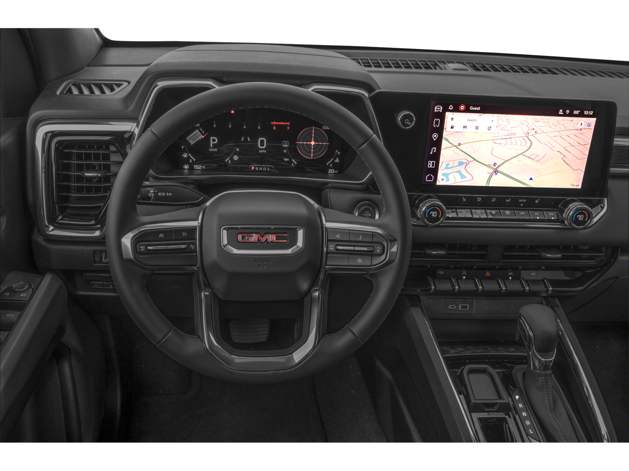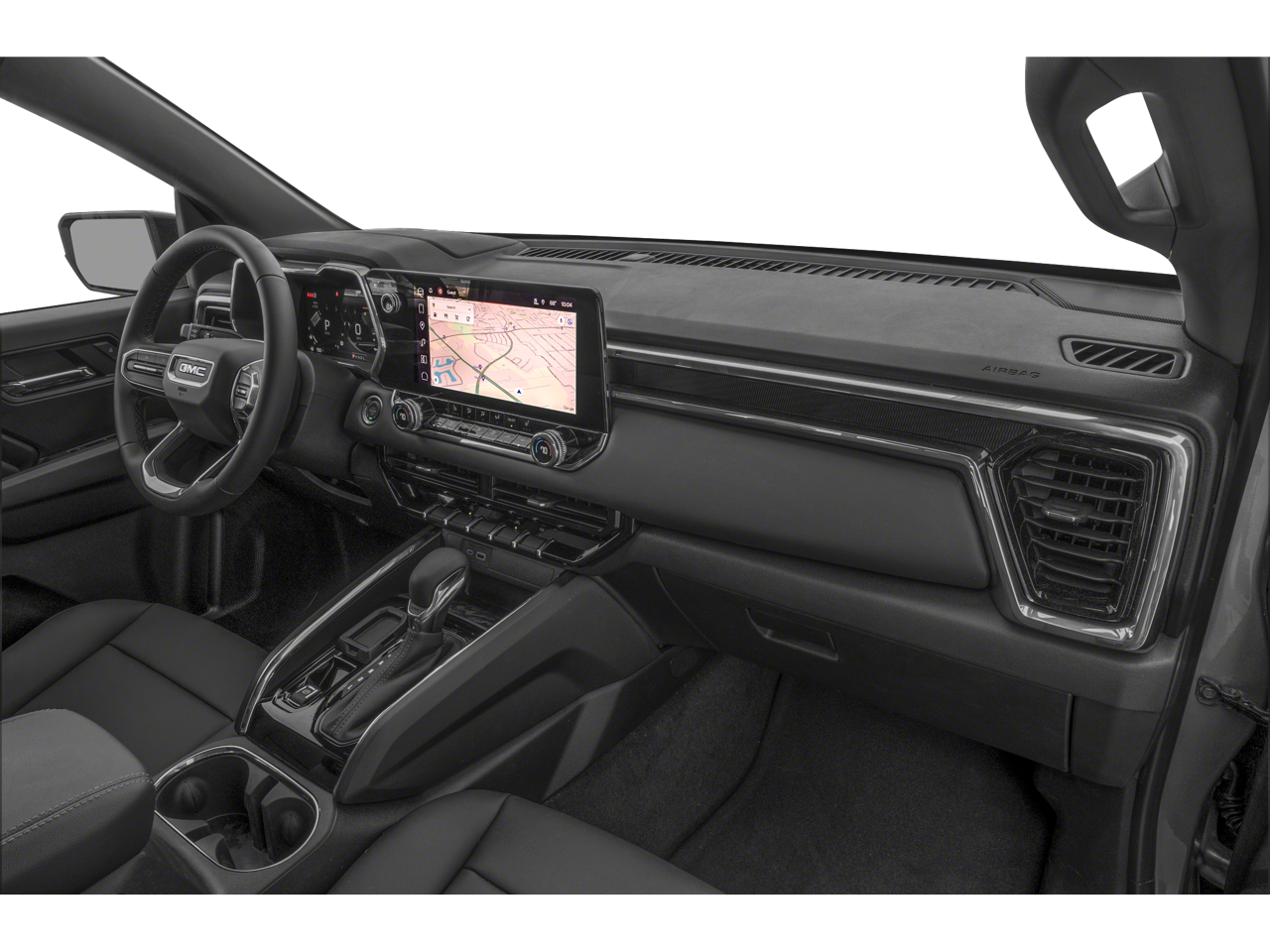 CONVENIENCE PACKAGE includes (DEG) Driver and front passenger sliding visor with illuminated vanity mirrors, (T40) LED front fog lamps, (CJ2) dual zone automatic climate control, (KI6) 120-volt power outlet rear of console, (KC9) 120-volt bed-mounted power outlet, (BTV) Remote Start, (DD8) inside rear view auto-dimming mirror, (N37) manual tilt/telescoping steering column, (UBI) 2-USB Charge Only, rear of console, (BDR) Tailgate keyed cylinder lock, (BPC) MultiStow Tailgate, (C75) Front interior courtesy light with dual reading light and (PPA) EZ-Lift and Lower tailgate, BEDLINER, SPRAY-ON WITH GMC LOGO, ENGINE, TURBOMAX (310 hp [231 kW] @ 5600 rpm, 430 lb-ft of torque [583 Nm] @ 3000 rpm) (STD), TRANSMISSION, 8-SPEED AUTOMATIC, 8L80 (STD). GMC 2WD Elevation with Sterling Metallic exterior and Jet Black interior features a 4 Cylinder Engine with 310 HP at 5600 RPM*.